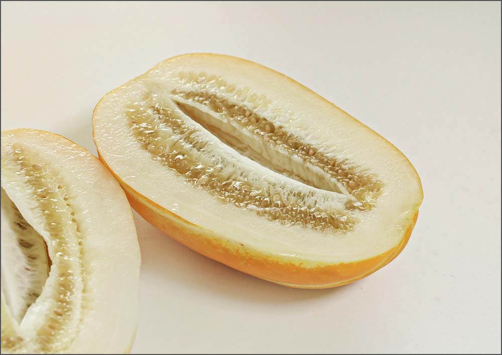 - 줄무늬는 흰색이 선명하고 또렷해야 잘 익은 참외입니다. 희미한 줄은 성숙이 덜 됐다는 뜻이에요.