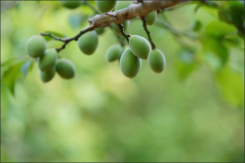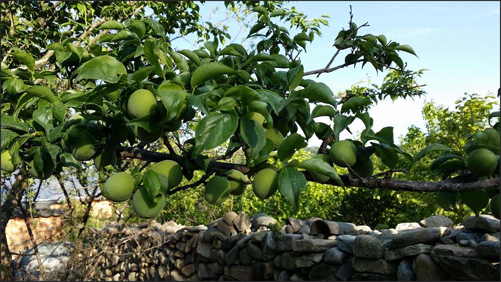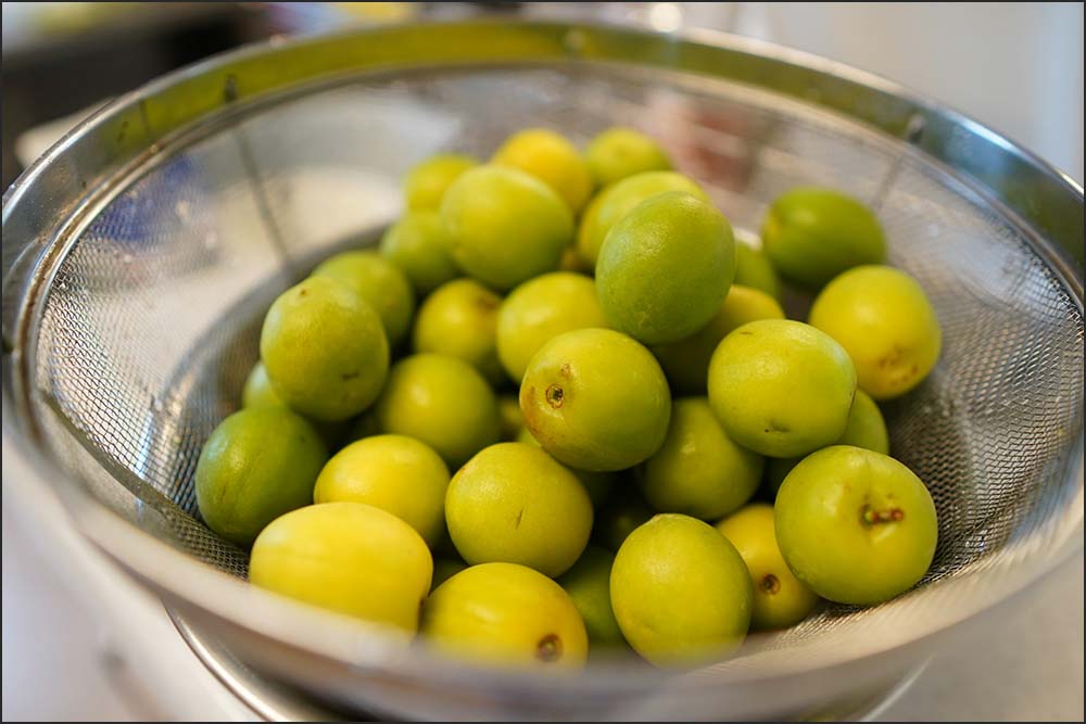 6월 초순에 수확한 단단한 청매실을 준비합니다. 상처나 흠이 없는 것을 선택하세요. - 세척 및 손질